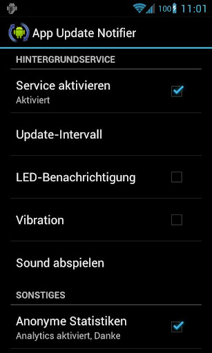 App Update Notifier, by XDA Developer Goddchen, allows you to set up LED and vibration notifications to let you know when one or more of your apps needs to be updated, as well as the ability to control the intervals in which you're notified, whether it's daily or hourly.